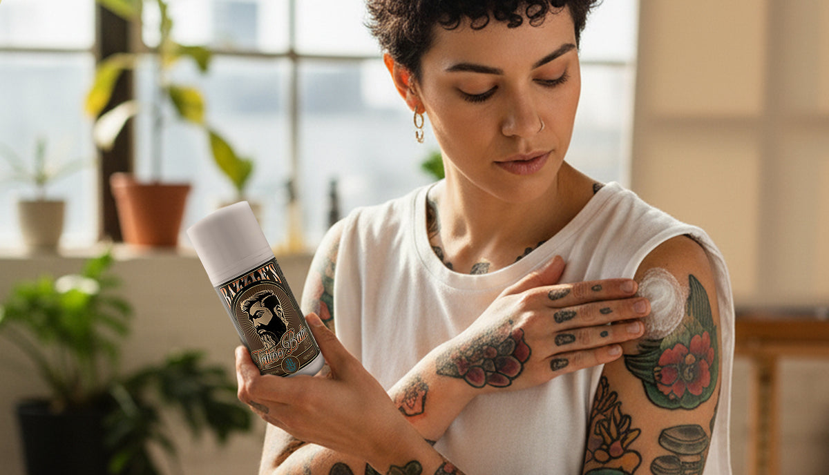 Natural antibacterial and anti-inflammatory care that helps soothe the skin and support healing for both fresh and existing tattoos.